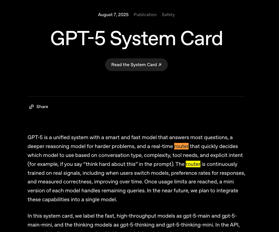 The #1 question that people have about GPT-5 being “unified” is “is it a router??”, a question I have asked both Greg Brockman and Noam Brown, and after a lot of back and forth on Twitter and inconclusive answers, we now have the answer right there in the GPT-5 system card: