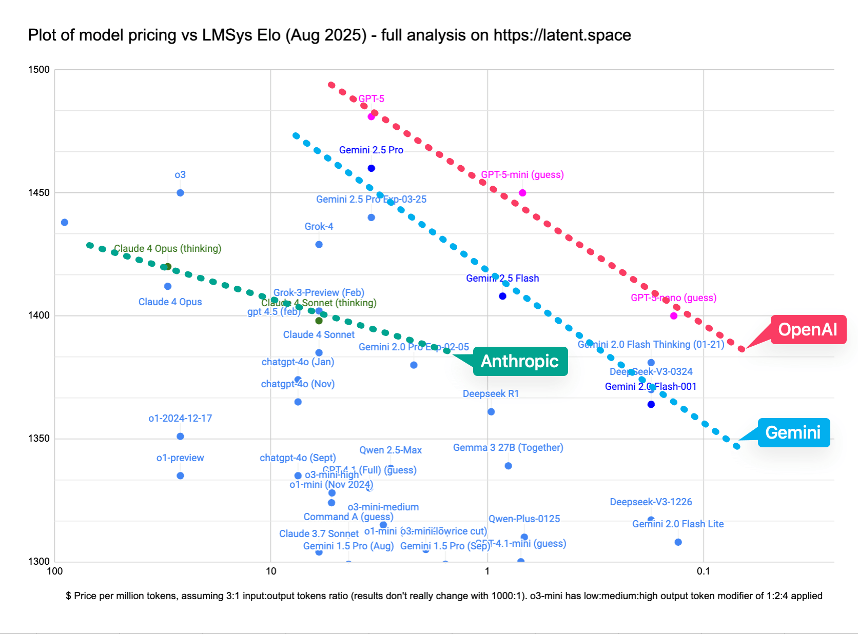 We have been the most vocal proponents of the intelligence pareto frontier since the start of the reasoning model era. Demis took note and GDM went for it. But with GPT-5, OpenAI now dominates the intelligence per dollar frontier for the first time.