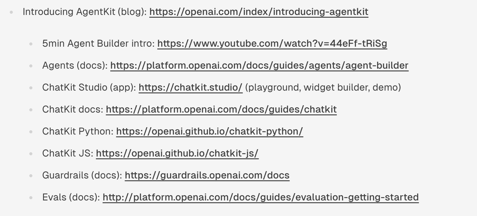swyx [00:07:18]: My final comment on apps SDK stuff and then we’ll move to AgentKit is, you know, like I always see like in abstractly when you sort of wireframe a website or an AI app, it used to be that the initial AI integration on the website would be you have to have an API. You have the normal website and then you have a little chat bot app and now it’s kind of like inverted where there’s ChatGPT at the at the top layer and then it’s like turn out the website embedded inside of it. And it’s kind of like that inversion that I honestly have been looking for for a little bit. And I think it’s really well done, like actually all like the integrations and the custom UI components that come up. You had like Canva on the keynote there and it looks like Canva, but like you can chat with it in all your the context of your ChatGPT. That is an experience I’ve never seen. Yeah.