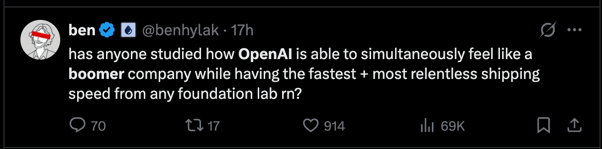 Sherwin [00:06:11]: Yeah, I think there was like a tweet or something we did where it was like OpenAI, you know, is.