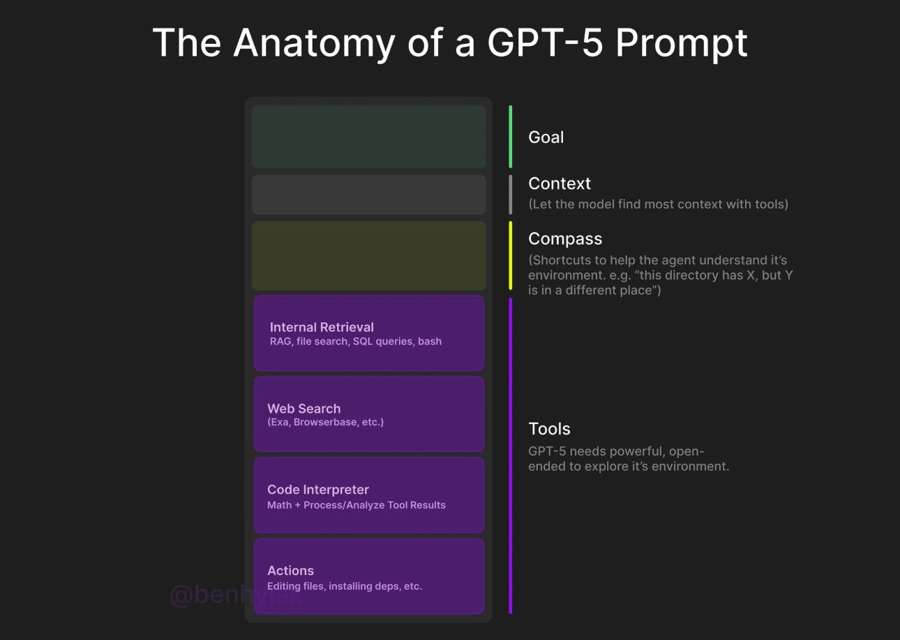 How web search works, or how git status works, are just implementation details in each tool. GPT-5 doesn’t have to worry about that part! It just needs to tell each tool the question it is trying to answer.